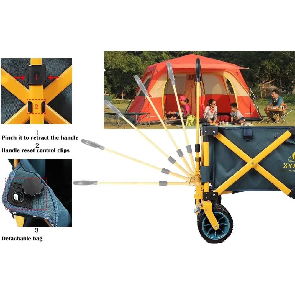 Collapsible Wagon Cart Utility Folding Carts Heavy Duty for Outdoor Camping Beach Garden With Big Wheels Dark Green Yellow XL