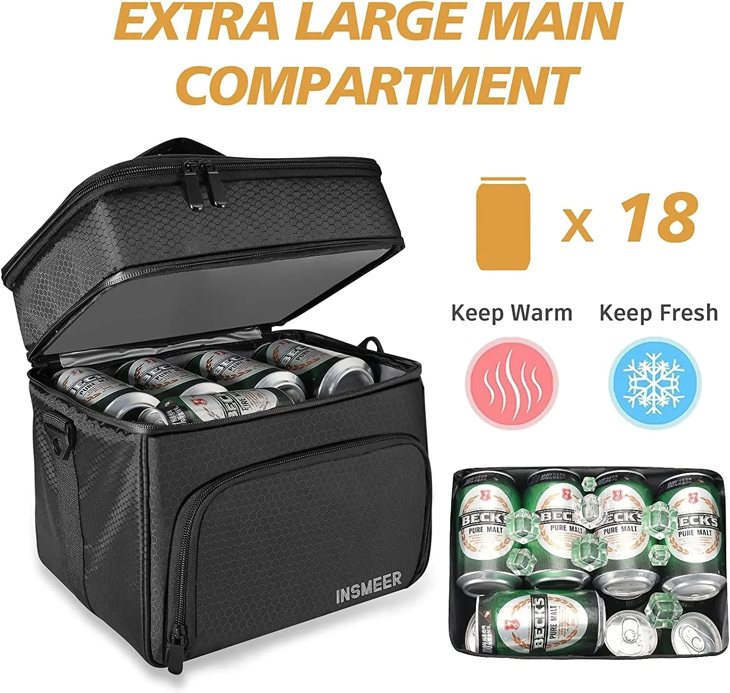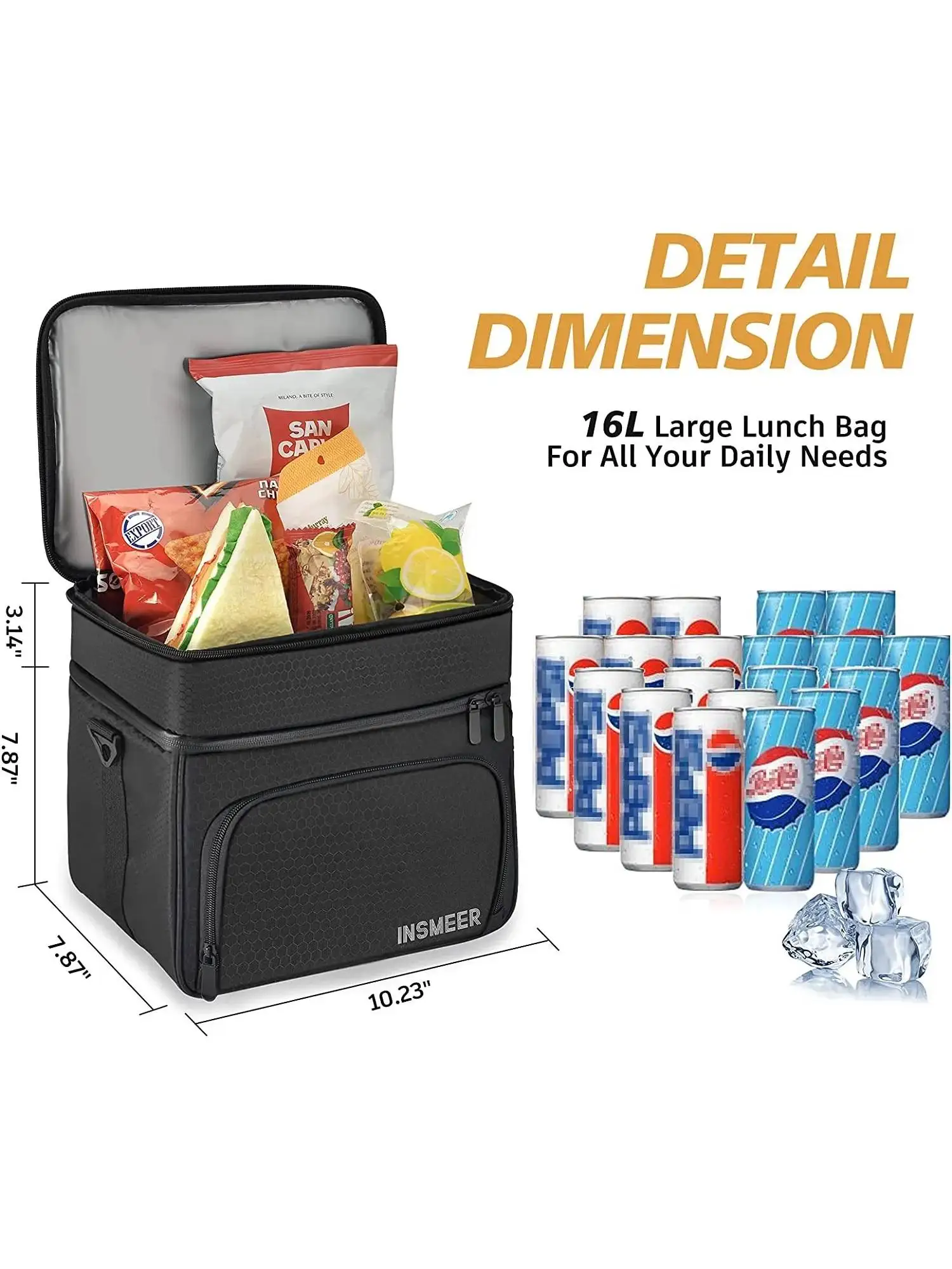 ◎Perfect size & big capacity: 2-Compartment Lunch Bag measures 10.23*7.87*11 in. Fits up to 16 cans of soda or cans of your choice of beverage. 2 different compartments (16L) just big enough to fit it a variety of items for you on the go for the day. The front pocket can be used for small items like wallets, keys, phones, etc.